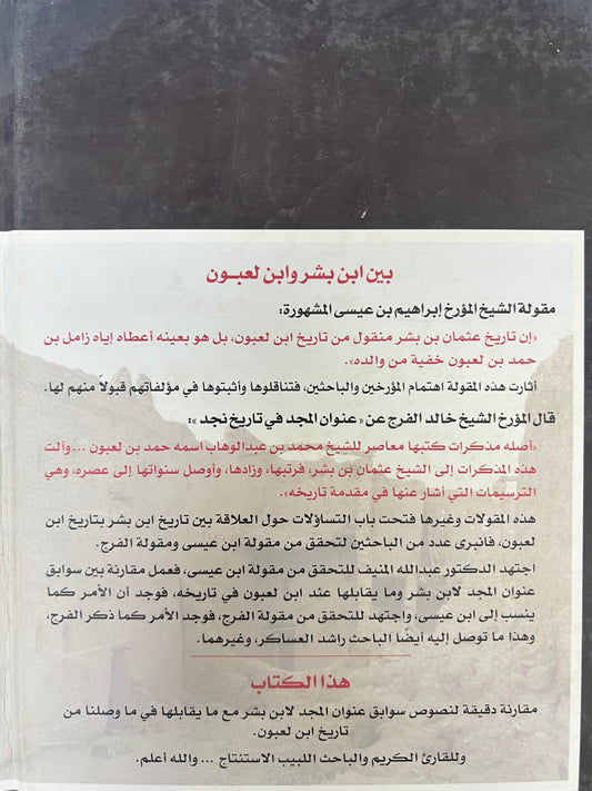 نقولات عنوان المجد من تاريخ ابن لعبون : ابن بشر على خطى ابن لعبون
