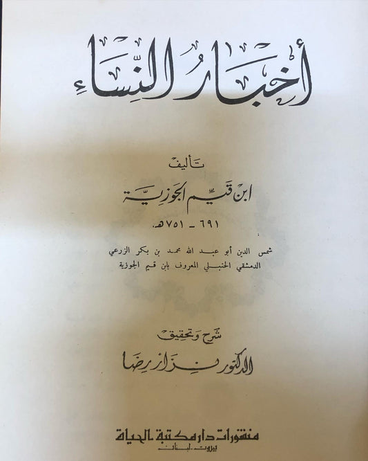 اخبار النساء - اشهر اخبار النساء في التاريخ العربي لأبن قيّم الجوزية