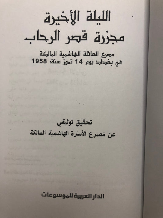 الليلة الاخيرة مجزرة قصر الرحاب : مصرع العائلة الهاشمية المالكة في بغداد يوم 14 تموز سنة 1958