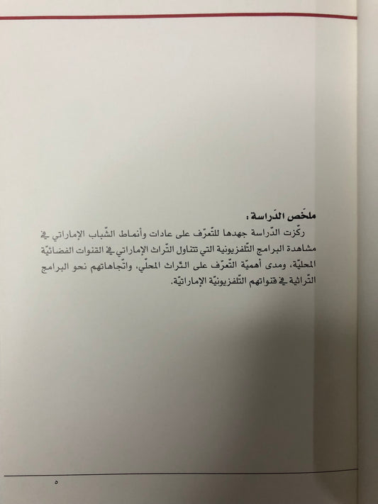 عادات وأنماط تعرض الشباب الإماراتي للبرامج التراثية : في القنوات التلفزيونية المحلية (الإماراتة)
