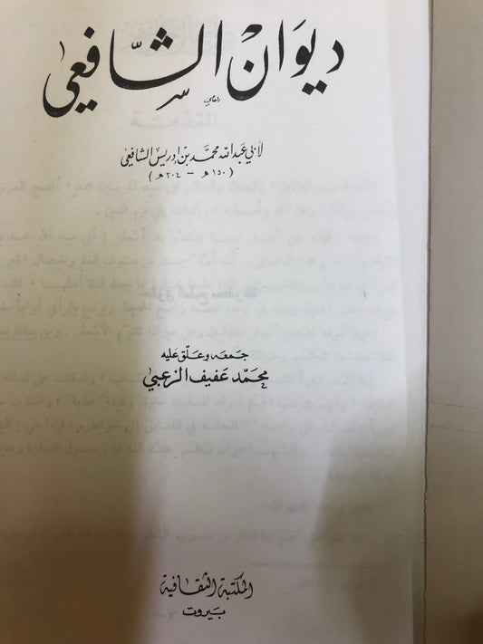ديوان الشافعي : لابي عبدالله بن محمد بن إدريس الشافعي (١٥٠هـ- ٢٠٤هـ)