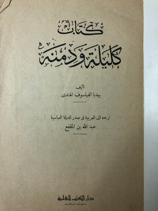كتاب كليلة ودمنة : عبدالله بن المقفع - طبعة قديمة مستعمله
