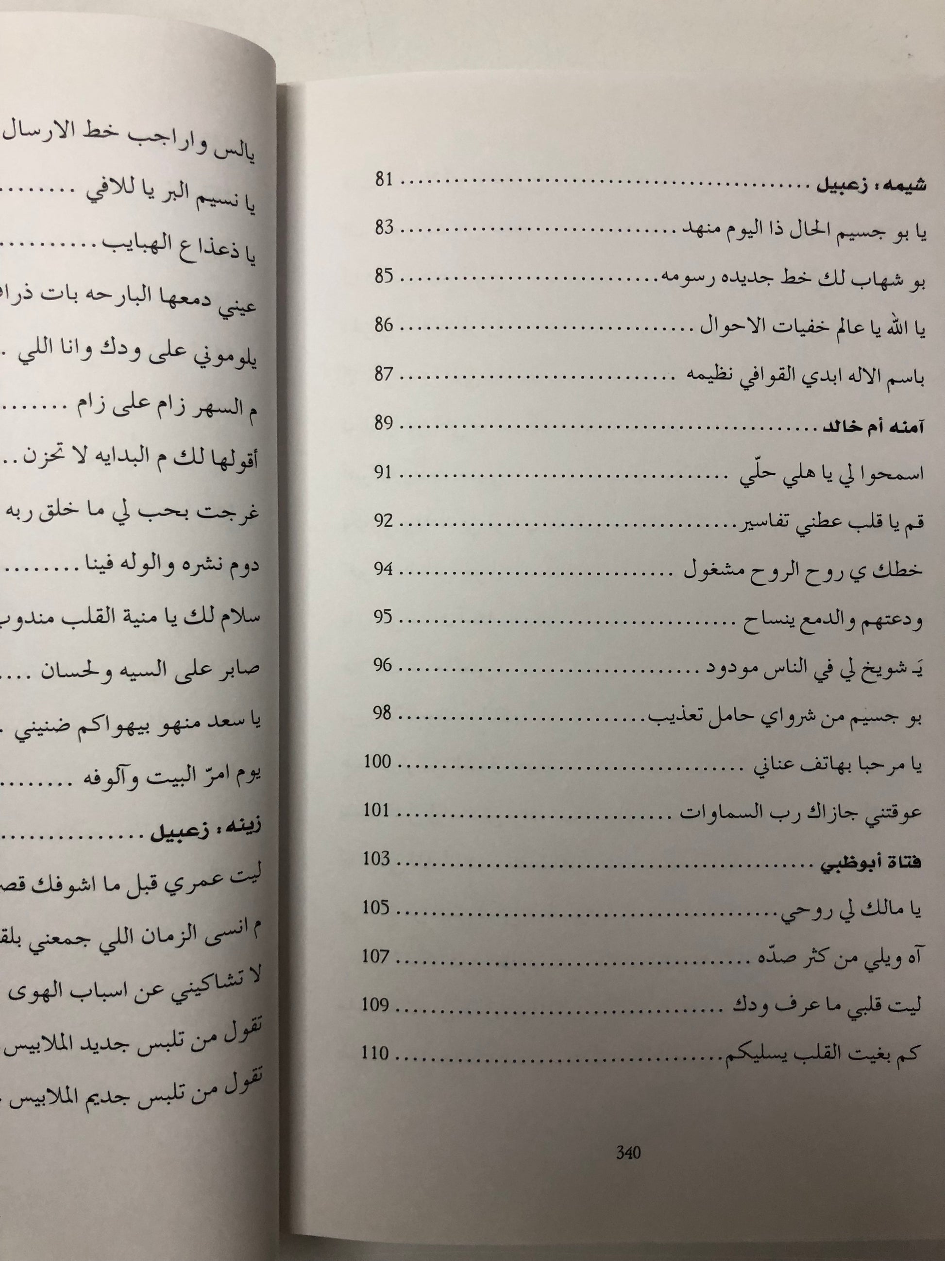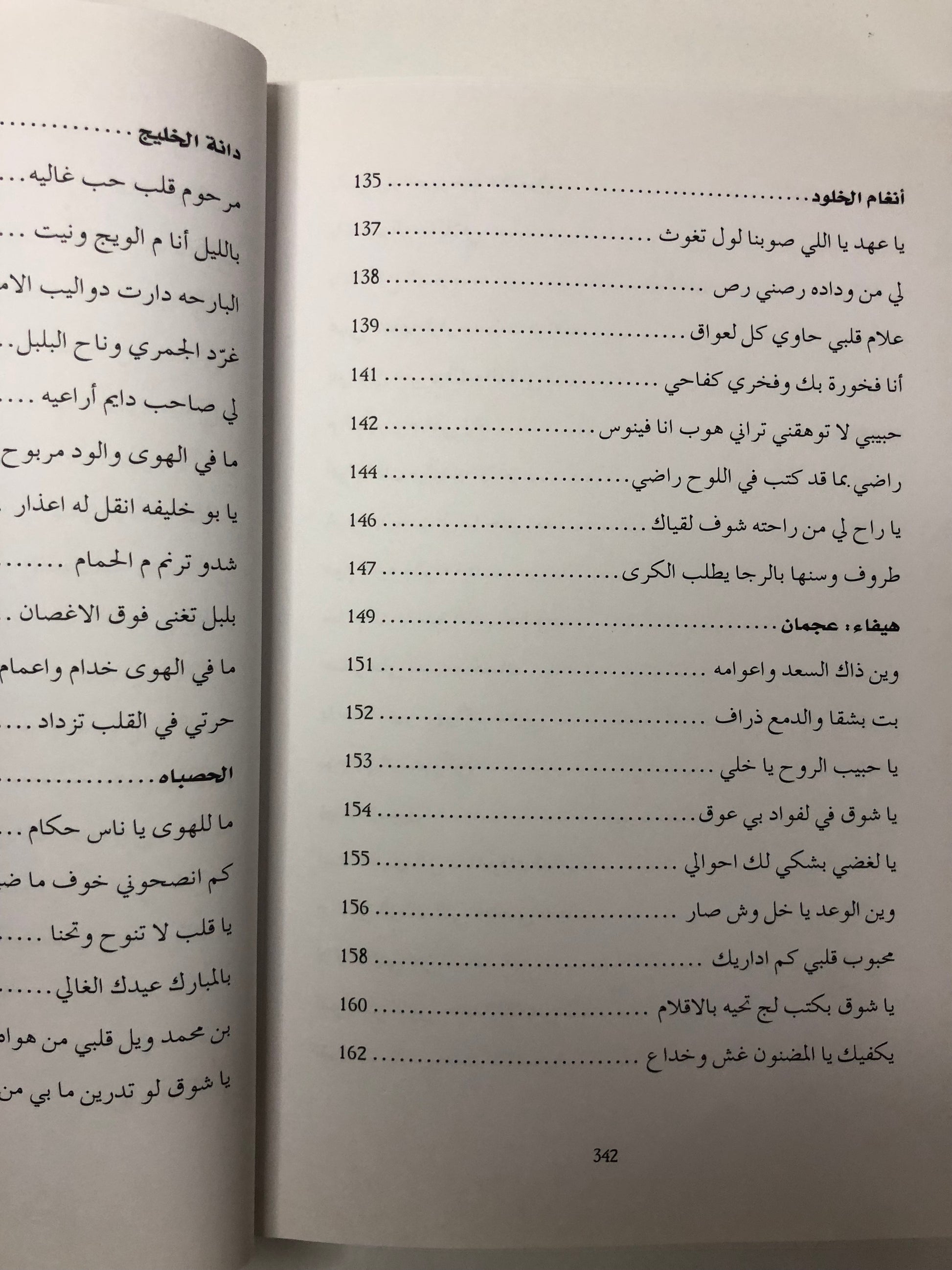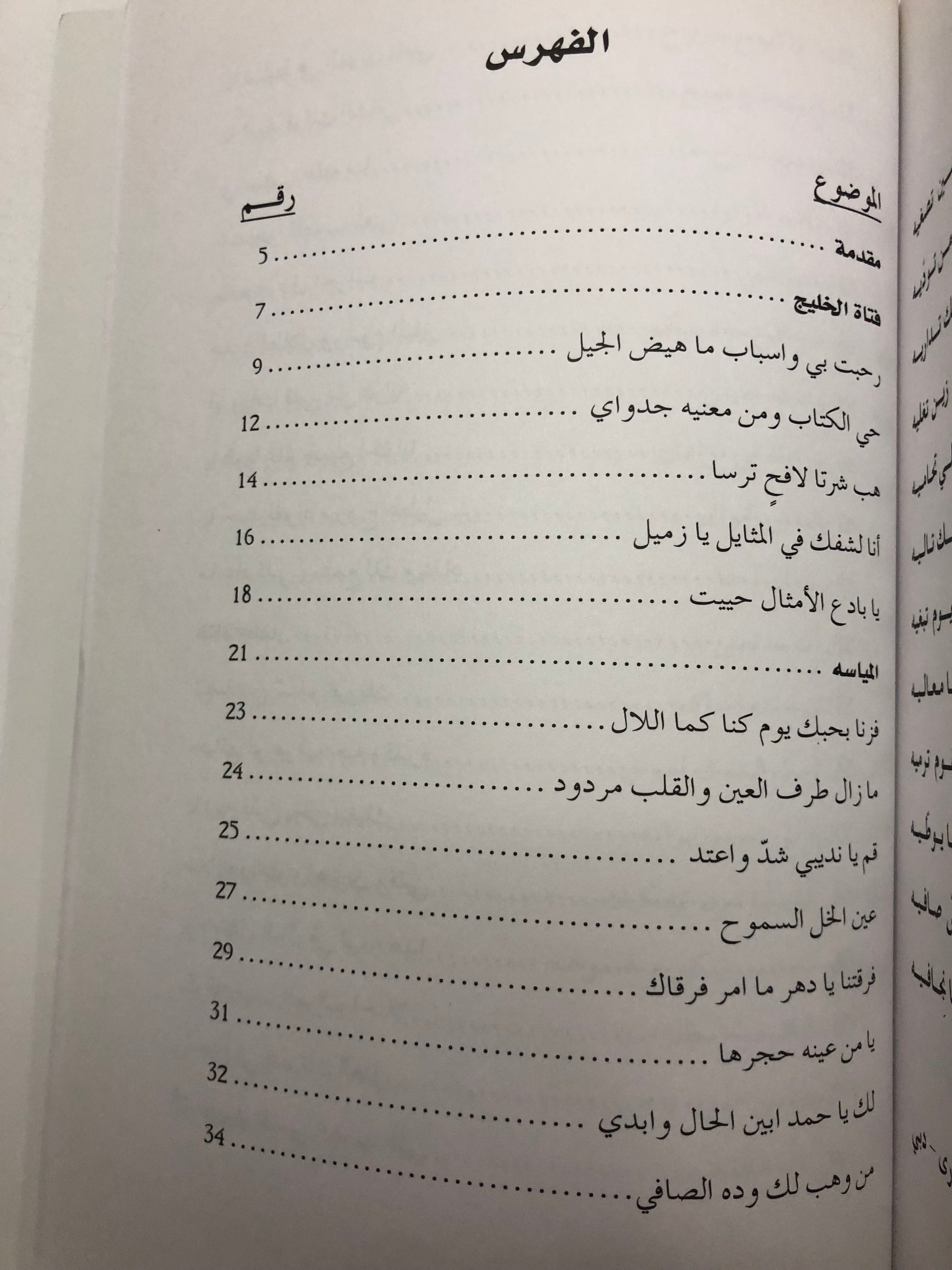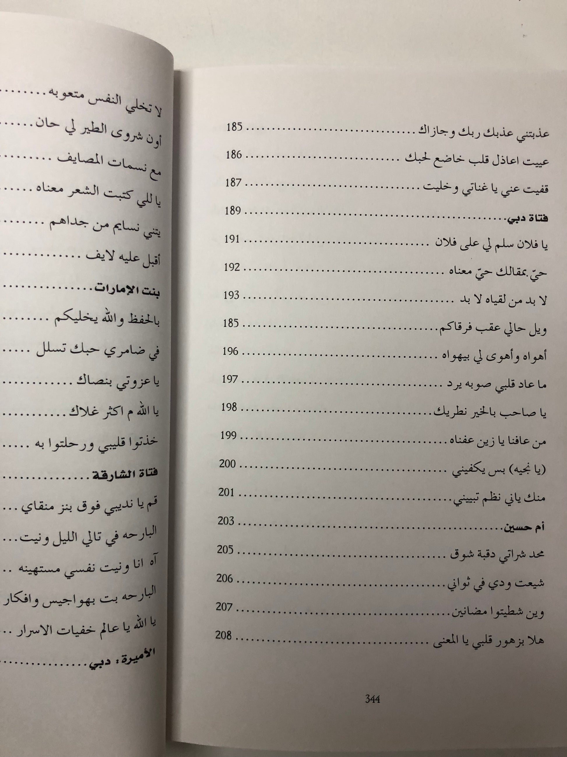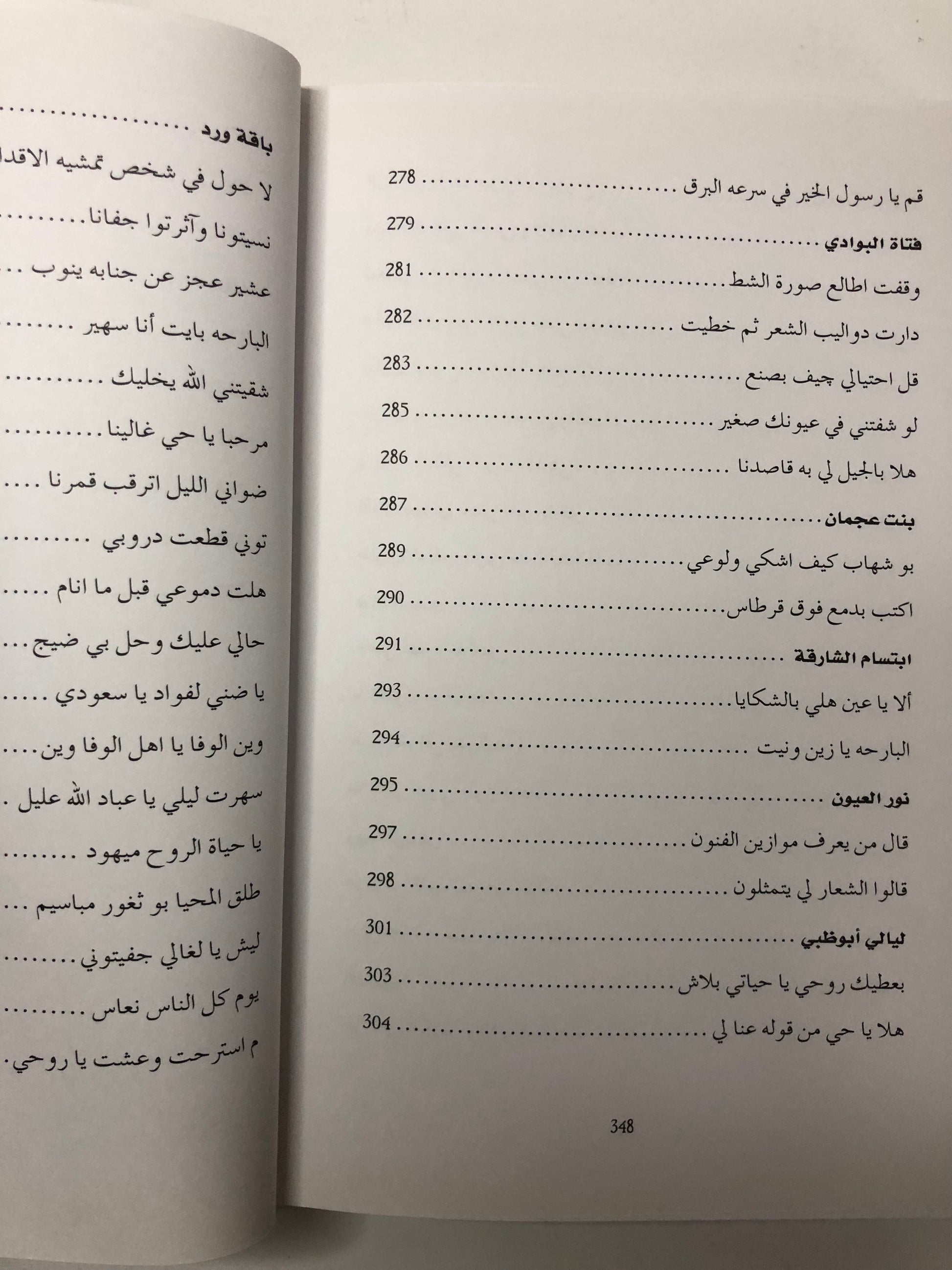 يحتوي الكتاب على ما يربو إلى مئتين قصيدة لأكثر من 30 شاعره من الأمارات .. من أمثال فتاة الخليج / فتاة جلفار / أنغام الخلود / الحصباه والكثير غيرهم